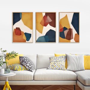 Wall Art – Blue Orange and Gold (3 sets) – Canvas Prints-Poster Prints