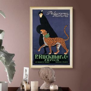 Wall Art – Woman Walking Leopard Vintage – Canvas Prints-Poster Prints